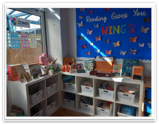 At our school, we're passionate about fostering a love of reading in every child. We know that engaging with books is a powerful way for children to learn and grow. We make sure we invest time in making our book corners vibrant and welcoming, and a space for all children to recognise aspects of themselves and their own, unique world, as well as to learn more about different people and their differing worlds.