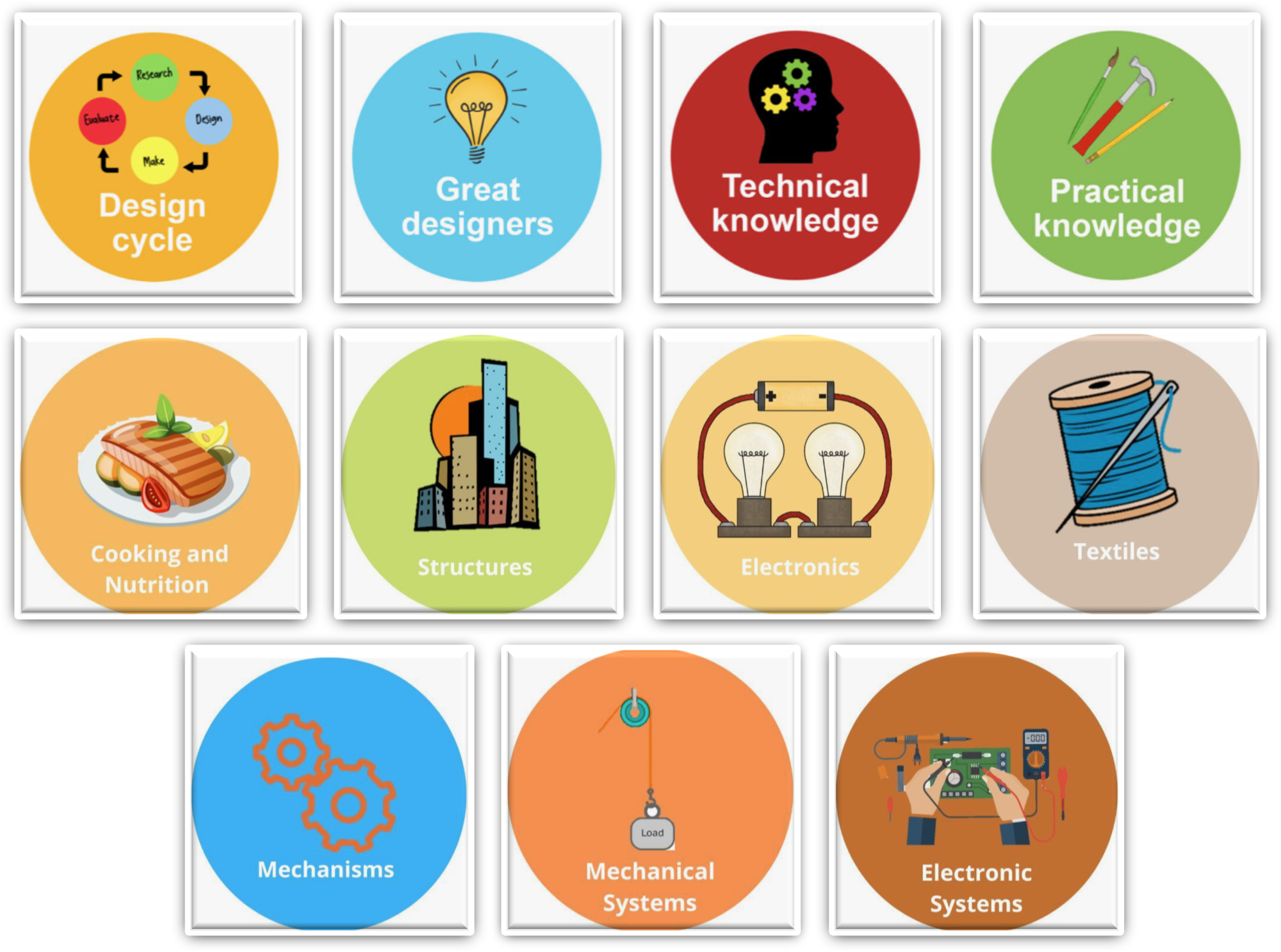 Definition: Where children learn how products and systems are designed and manufactured, how to create new products and to make creative use of a variety of resources including digital technologies to improve the world around them.