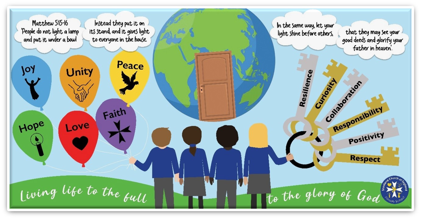 We believe that all our children are uniquely created and it is our duty to nurture their talents so each child can grow in confidence, character and spiritual understanding. We provide experiences and opportunities for them to learn, explore, be inspired and discover their potential, knowing they are loved and valued. Our ambition is for every child to leave our school ready to walk boldly into their future, inspired to dream big and have high expectations of and aspirations for themselves and others so they can make a positive difference in the world.